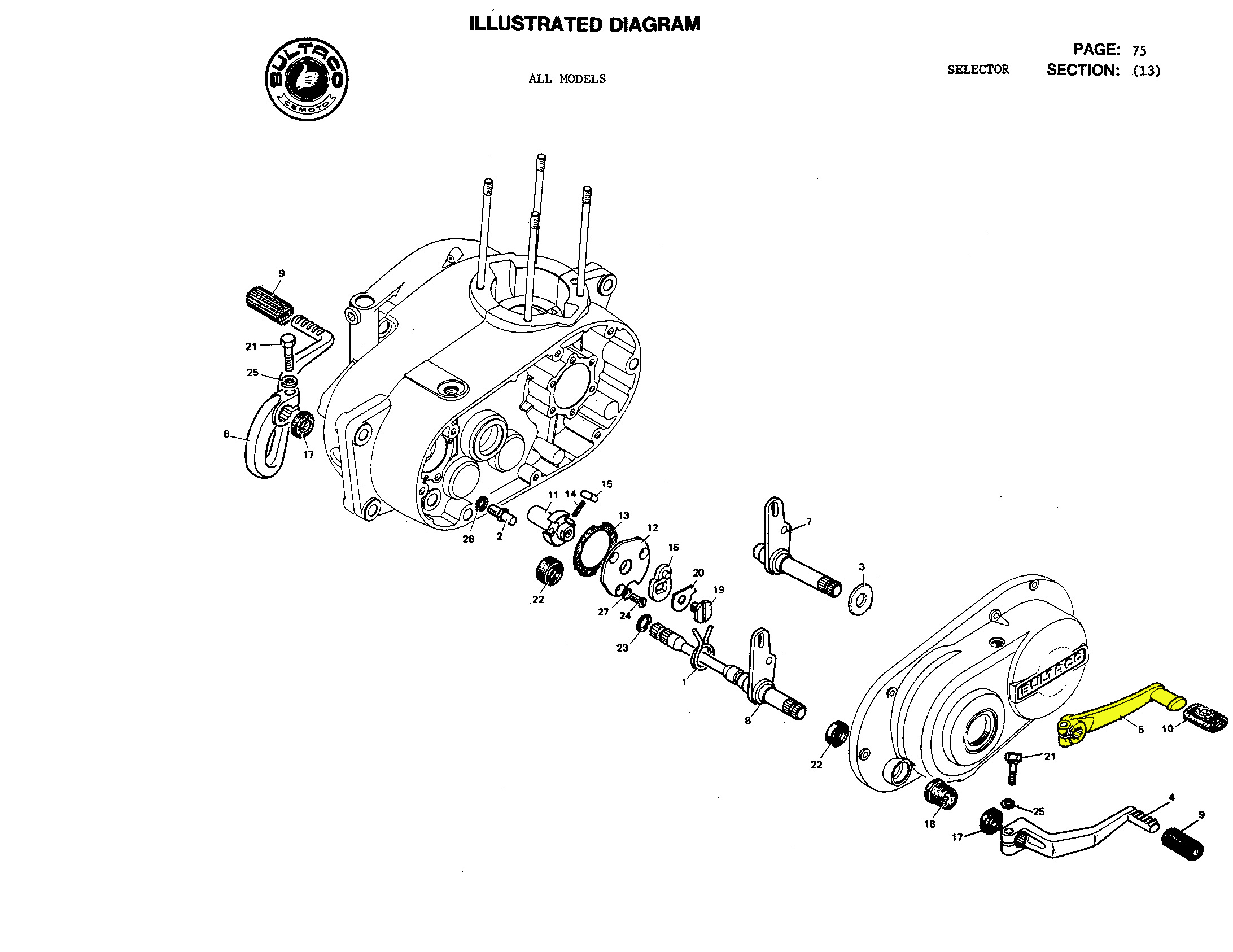 A rare and strange gear lever for an engine different from the rest of Pursang, very rare for its clutch cover with manhole plug.