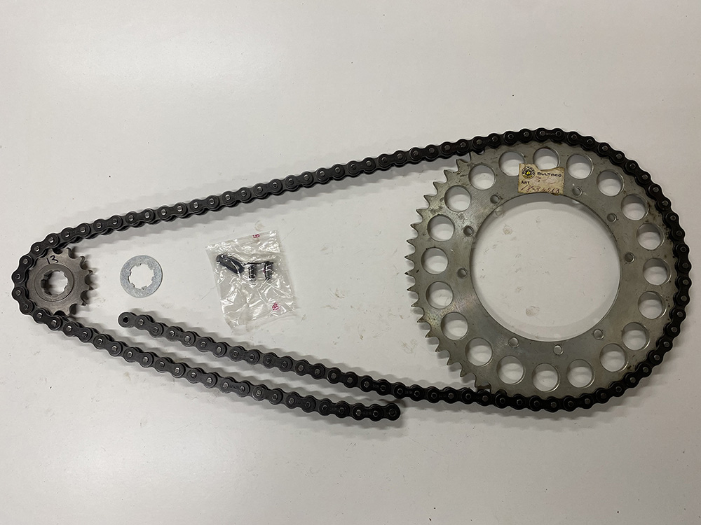 Complete drag kit, sprocket, high quality black chain and rear Sprocket, Bandido family, Pursang