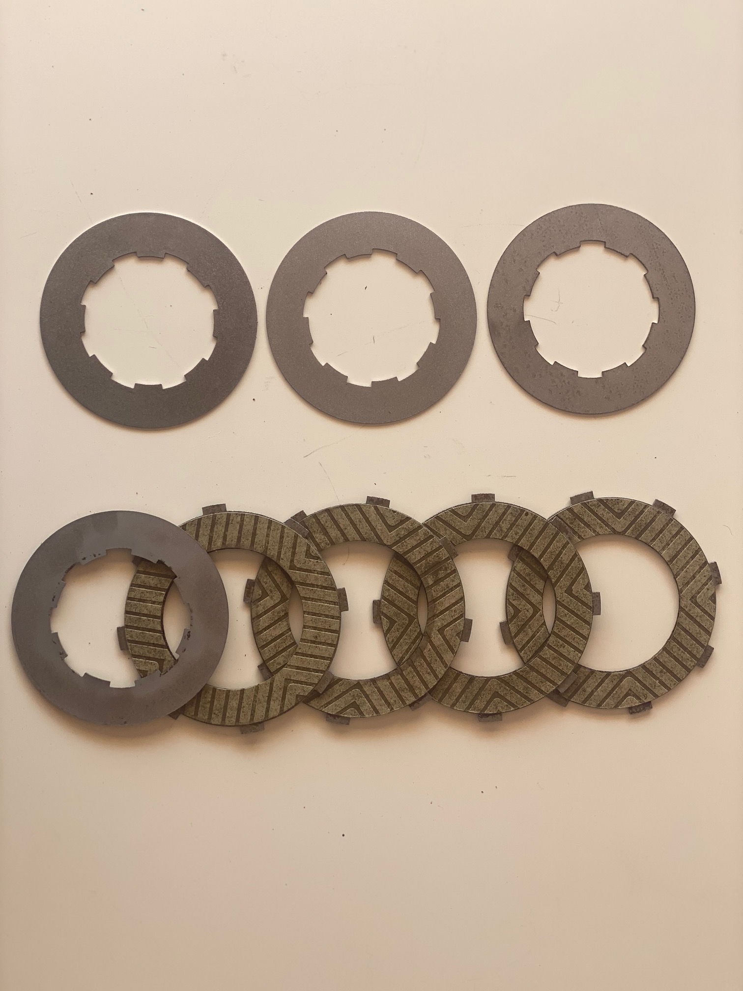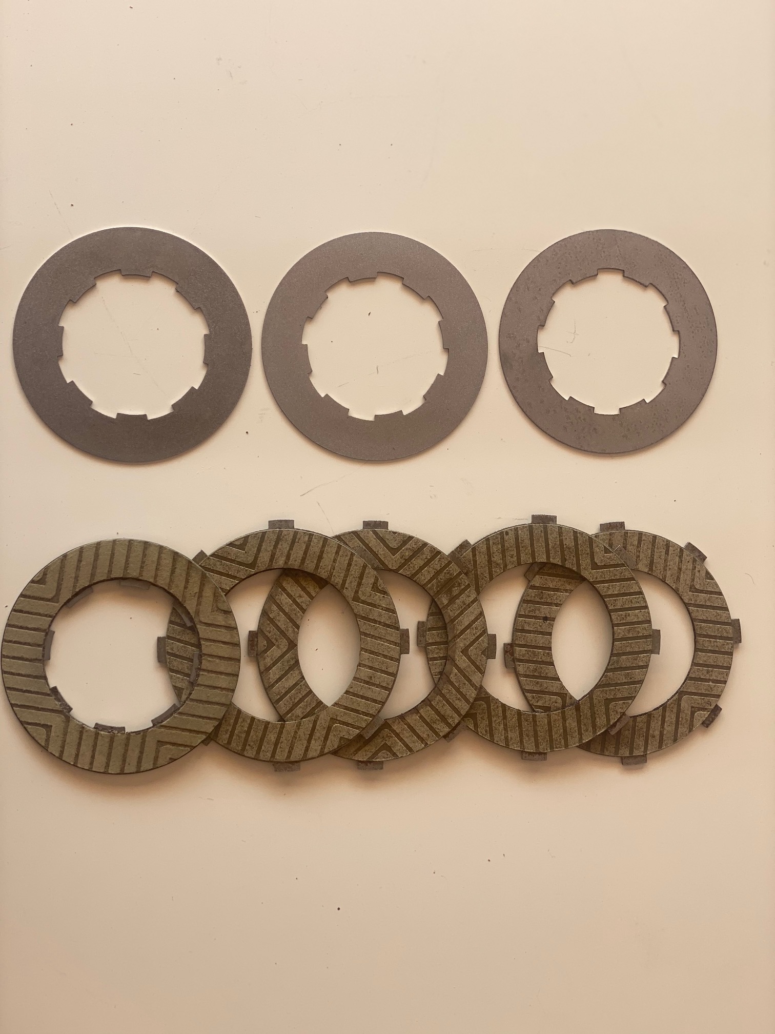 Set of modernized clutch discs from old models with kevlar material to improve grip. These discs differ from those of modern models in that they have straight castellations, not curves like the rest of Bultaco models, in In this kit you will find a disc that is sheet metal on one side and Kevlar on the other is to be placed at the end. The set is made up of 3 plates and 5 discs.