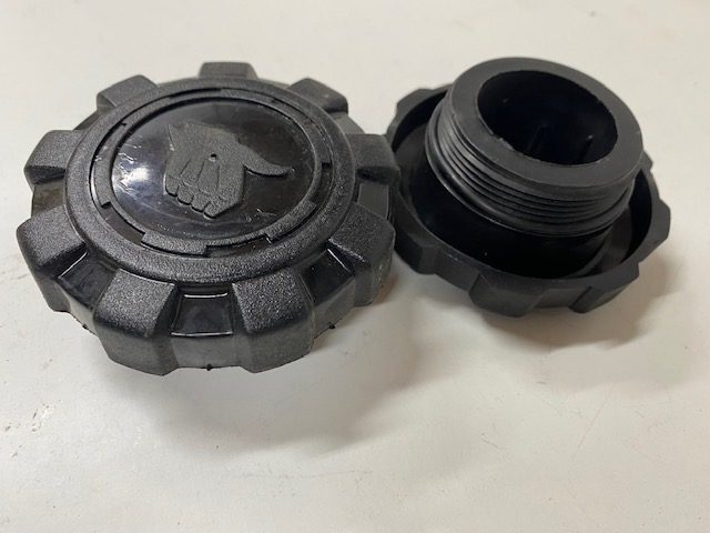 Large plastic tank cap with fine thread.