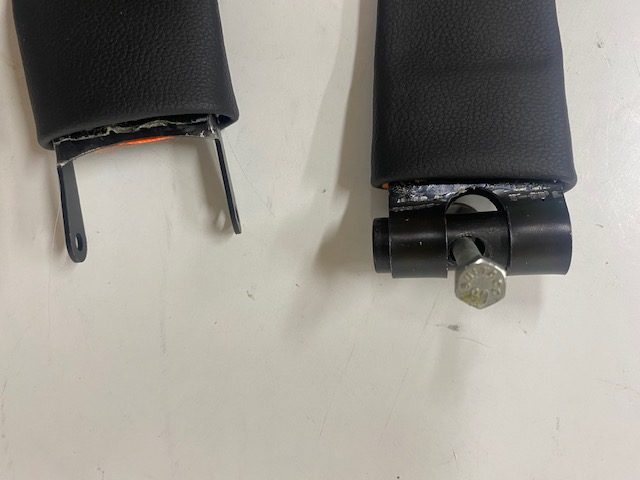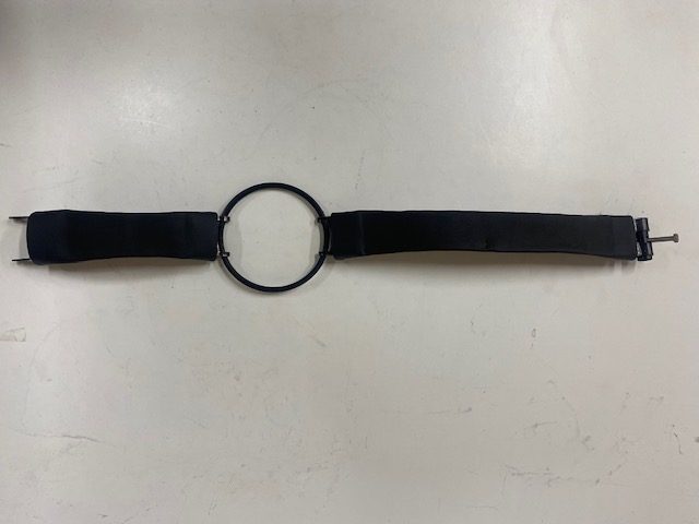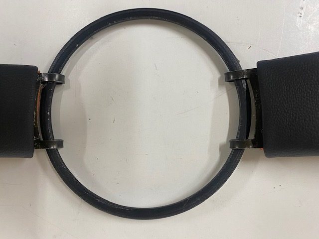 Cincha especial para el amarre de los depositos de gasolina de las Bultaco TSS modelos 14.24. La anilla de acero coincide con el centro del deposito y el tapon de gasolina.