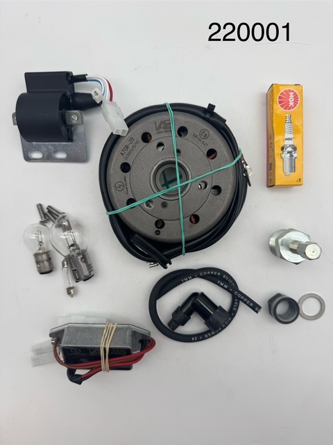 Encendido electronico 12V ,con todos los componentes,claxon,bombillas,bobina alta,bujia,regulador,instrucciones de montaje.etc..