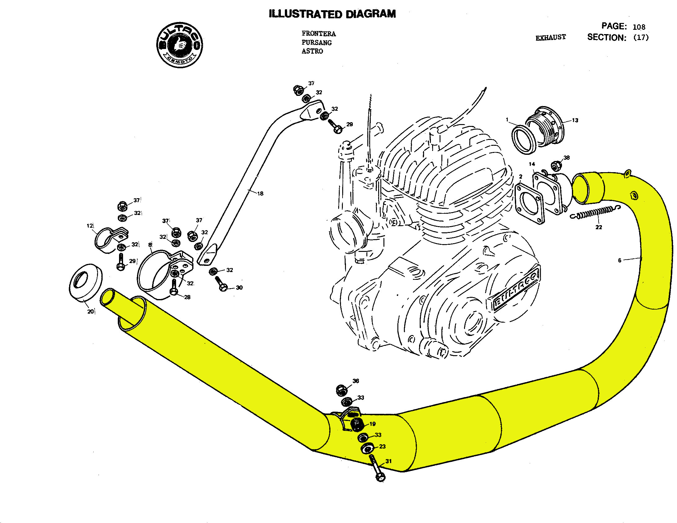 Escape tubarro original Bultaco Pursang MK-8 360cc