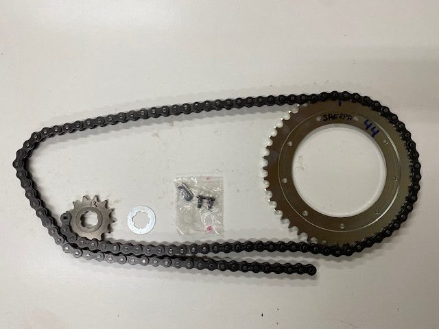 Kit de arrastre completo, piñon salida, cadena negra alta calidad y corona, familia Pursang, Frontera, Alpina.