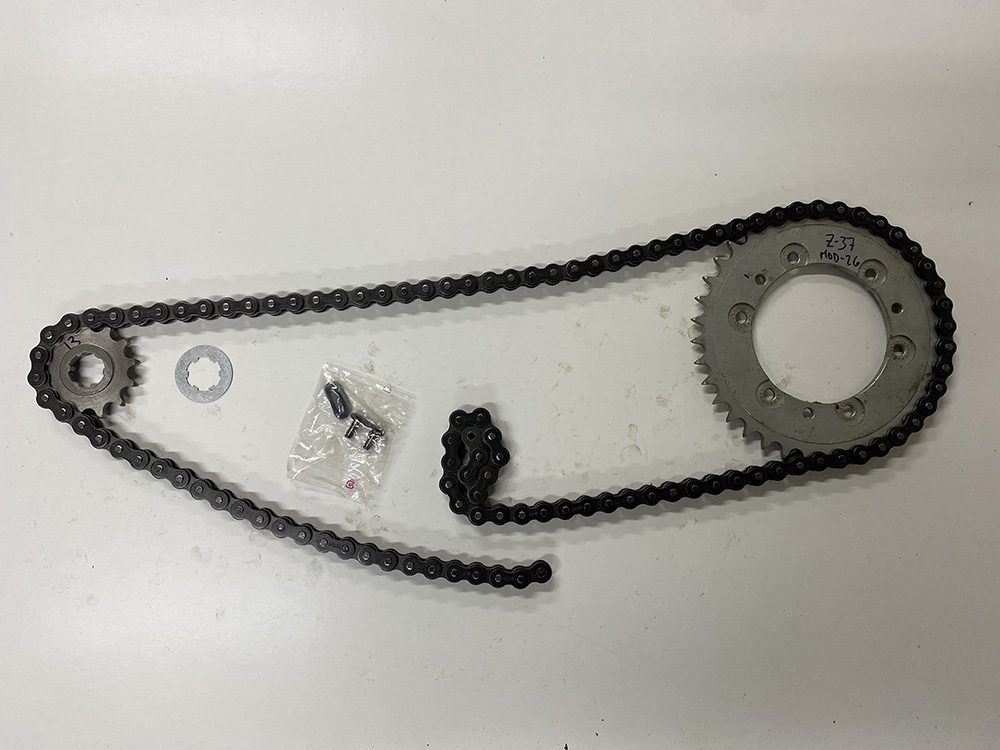 Kit de arrastre completo,piñon salida,cadena negra alta calidad y corona, familia Matador