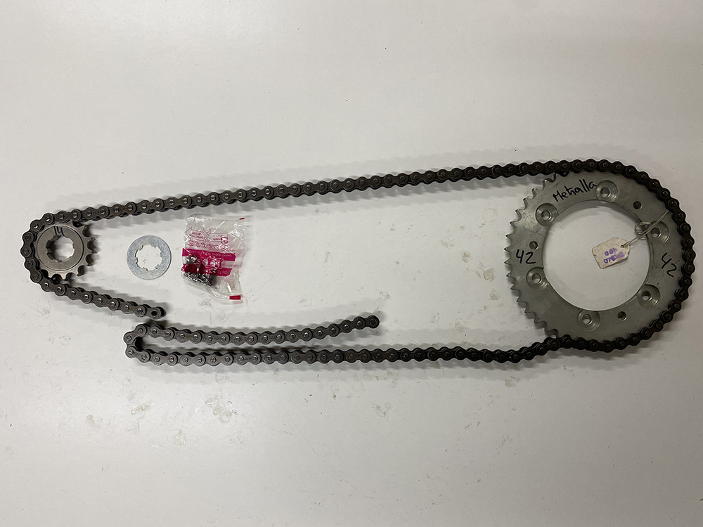 Kit de arrastre completo, piñon salida, cadena negra alta calidad y corona familia Metralla MK-2