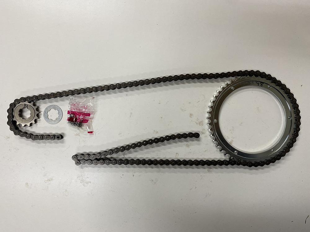 Kit de arrastre completo, piñon salida, cadena negra alta calidad y corona , familia primeros modelos carretera