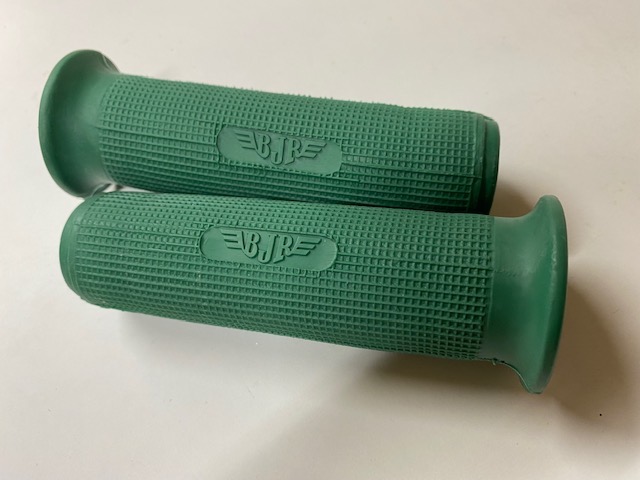 Juego de puños en color verde para motocicletas B.J.R. Están fabricados en PVC (como los originales de la época) y el precio aquí indicado corresponde a la pareja.