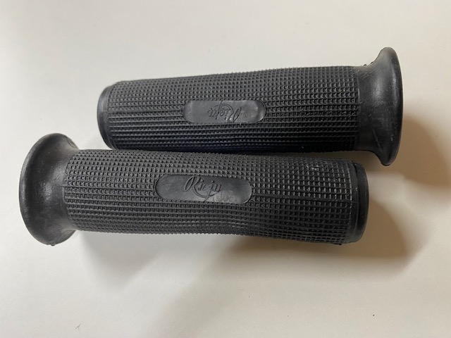 Juego de puños (color negro) RIEJU. Incluye una unidad de 22 mm de diámetro y otra unidad de 24 mm de diámetro interior (vehículos con mando del cambio velocidades al pié). Están fabricados en PVC (como los originales de la época) y el precio aquí indicado es por la pareja.