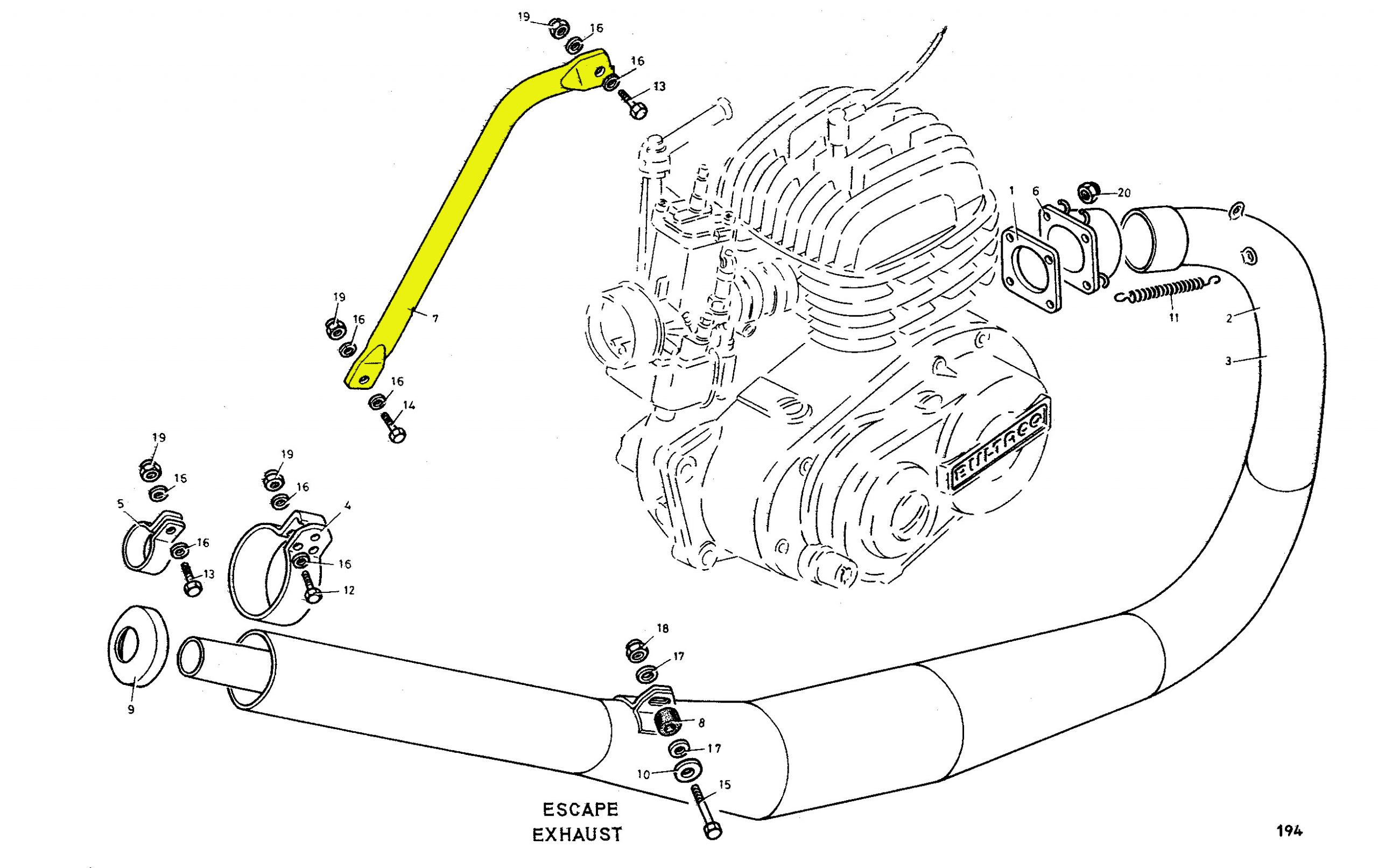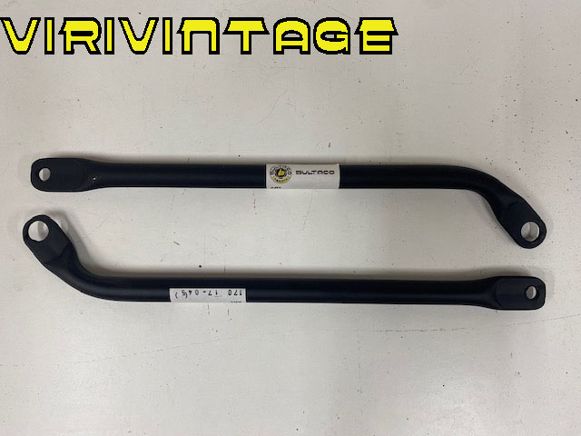 Los tirantes de escape son un lio,hay varios modelos pero se complica si se cambia el escape,aunque parezca facil de fabricar es una pieza de las mas complicadas,puesto que poca gente sabe que lleva un hierro mazizo en su interior y es dificil darle el pliegue y luego curvarlo.De ahi su precio.